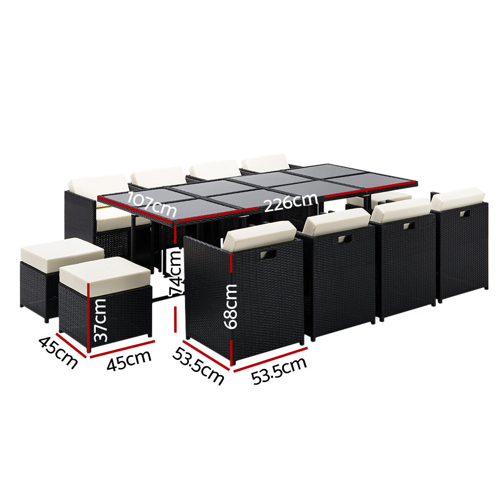 Gardeon Outdoor Dining Set 13 Piece Wicker Table Chairs Setting Black