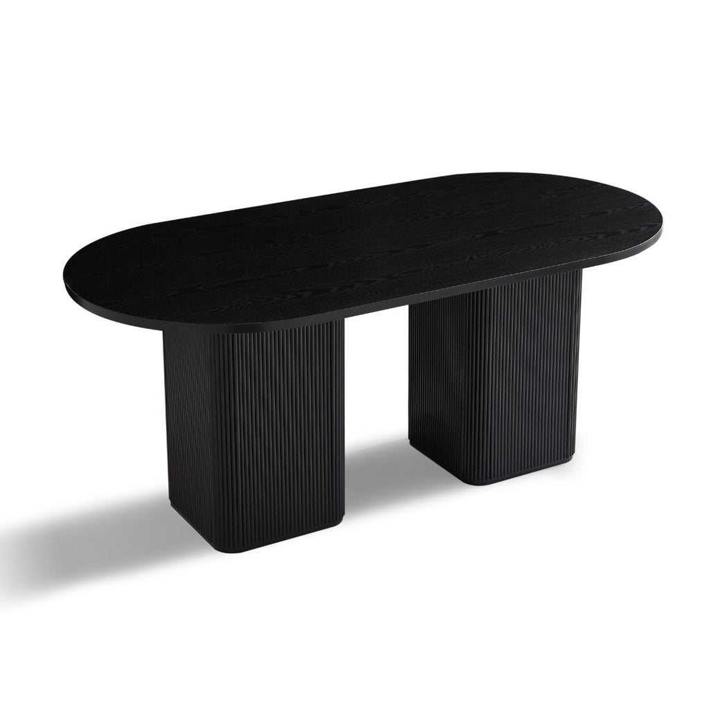 Patterns are a great way to bring interest to your room without creating clutter. The ribbed pattern on the two supportive pedestals of the Kate oval dining table was chosen to keep your space feeling bright and airy.