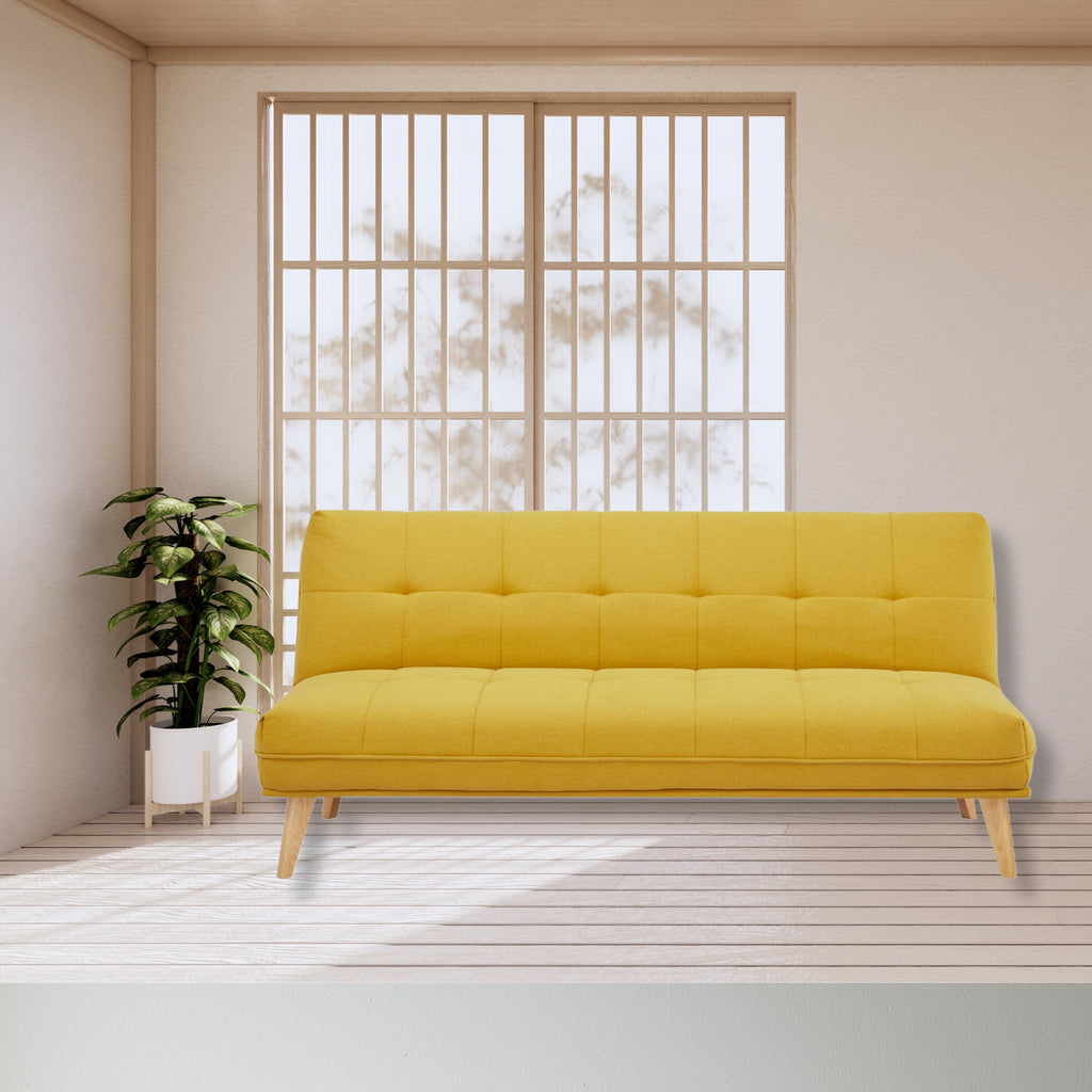 Jovie 3 Seater Sofa Queen Bed Fabric Uplholstered Lounge Couch - Yellow